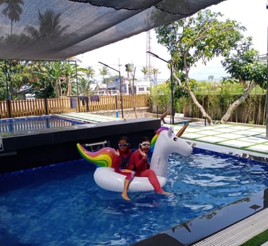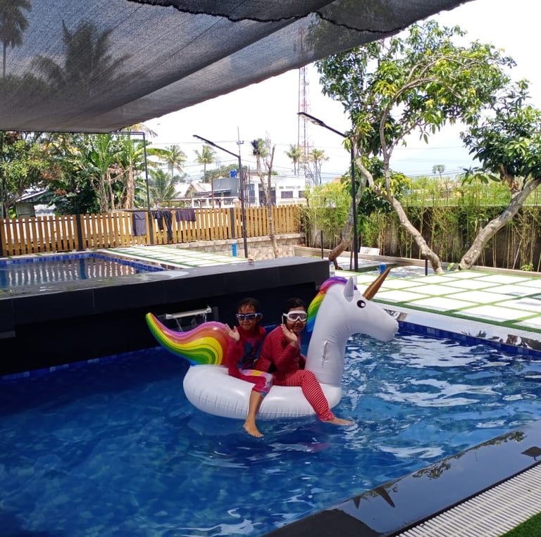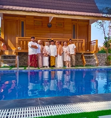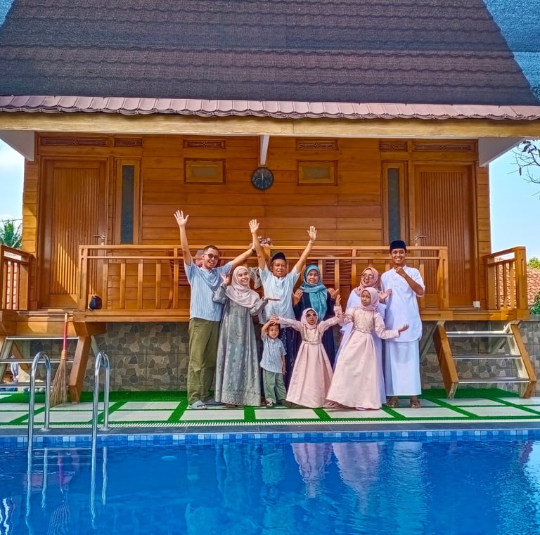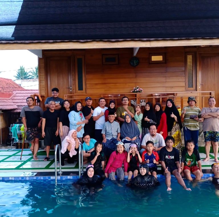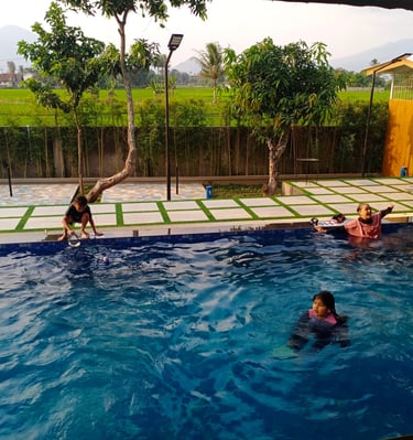 Nikmati kesegaran dan kenyamanan kolam renang serta suasana alam yang tenang di kolam pancing.
